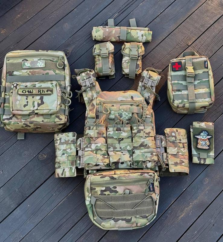 Плитоноска v10 + рюкзак 8 л под гидратор 2 л + 8 подсумков и комплект шевронов олива