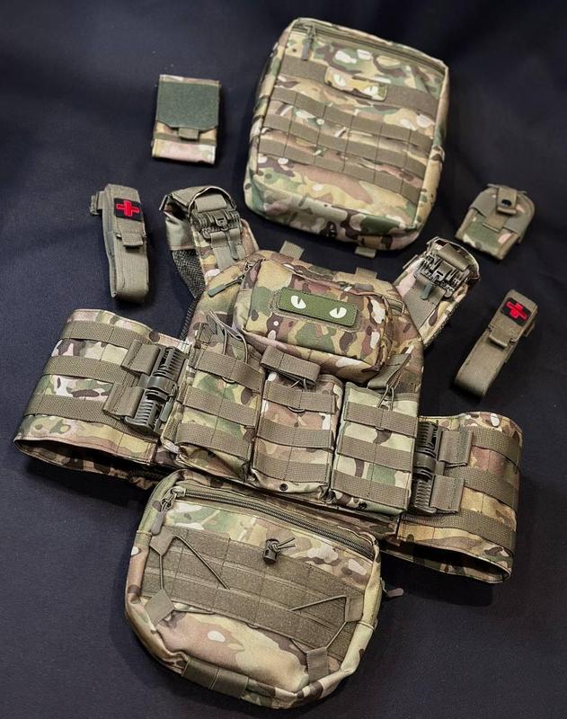 ## Комплект Плитоноска швидкого скидання з боковими карманами + напашник + 7 підсумків VE-33 Шеврони в комплект не входять ! В комплекті плитоноска 1 шт Тройний підсумок для АК 1 шт Рюкзак 1 шт Підсумок для плитоноски 1 ш Підсумок під турнікет 2 шт Підсумок для телефону 1 шт Підсумок для рації 1 шт Напашник 1 шт бокові кармани під м'які балістичні пакети 15*30 см Якісна плитоноска за стандартом НАТО оснащена боковою та верхньою системою швидкого скидання, під плиту 25×30 см. - Розмір плитоноски універсальний, регулюється на плечах та по об'єму від М до XXL. - З середини прошита 3D сіткою та пом'якшуючою підкладкою, що слугує додатковим демпфером. - Позаду оснащена евукаційною ручкою. - По верху прошита системою Molle, що дозволяє кріпити будь-які підсумки та інше додаткове спорядження. - По переду вшитий додатковий карман на блискавці для особистих потреб. - Бронеплити вставляються знизу та фіксуються широкою системою липучок, що не дасть вашим плитам випасти чи протерти кріплення. Виготовлена з міцної, водонепроникної тканини кордура. Для пошиву використовується поліамідна стропа. Для її виготовлення використовується стійкий до зносу, суперміцний, високоякісний поліамід. Має відмінні властивості: високий рівень міцності, надійна, зможе витримати великі навантаження, стійка до негативного впливу ультрафіолету, вологи, високих/низьких температур, довговічна. Відповідає вимогам вітчизняних стандартів якості. Плитоноска прошита армованими нитками, що підвищує термін служби виробу. Компактний та легкий рюкзак є незамінним елементом спорядження професійних військових. Виконаний повністю із міцного, водонепроникного матеріалу оксфорд 600d. Основні характеристики: • розмір (см): 25/30/10 • кріплення на системі MOLLE • має в середині 2 об'ємні кишені • може використовуватися як рюкзак для гідросистеми. • має велкро панель для кріплень шевронів та патчів. • закривається на блискавку. • додаткові стропи MOLLE спереду. • посилені шви • армовані нитки Встигніть замовити, кількість штук за акцією обмежена! Остерігайтеся підробок і низькоякісного товару, його зараз дуже багато представлено під видом opигiнaлy! Ми пропонуємо найвищу добротну якість товару на ринку України, який виконує свою функцію та від якого ви отримуватиме тільки приємні емоції. Чому купують саме у нас? Відгуки та рекомендації реальних клієнтів Наш магазин має численні позитивні відгуки від задоволених клієнтів. Ви можете ознайомитися з їхнім досвідом і рекомендаціями в описі нижче та на нашому сайті, що допоможе вам зробити обґрунтований вибір. Прозорість і чесність Ми ведемо відкриту і чесну політику у відносинах з клієнтами і завжди йдемо на зустріч. Усі характеристики товарів, умови гарантії та обміну чітко вказані на нашому сайті, що дозволяє уникнути непорозумінь та забезпечує довіру клієнтів. Легка система повернення товарів Ми розуміємо, що іноді товар може не підійти Вам по тим чи іншим причинам. Тому ми пропонуємо гнучку та прозору систему повернення товарів, що забезпечує вам спокій і впевненість у вашій покупці. Високий рівень обслуговування клієнтів, 10 років досвіду Наші фахівці завжди готові надати професійну консультацію та допомогу у виборі товару. Ми цінуємо кожного клієнта і прагнемо зробити процес покупки максимально комфортним і приємним. Швидка доставка та зручні 