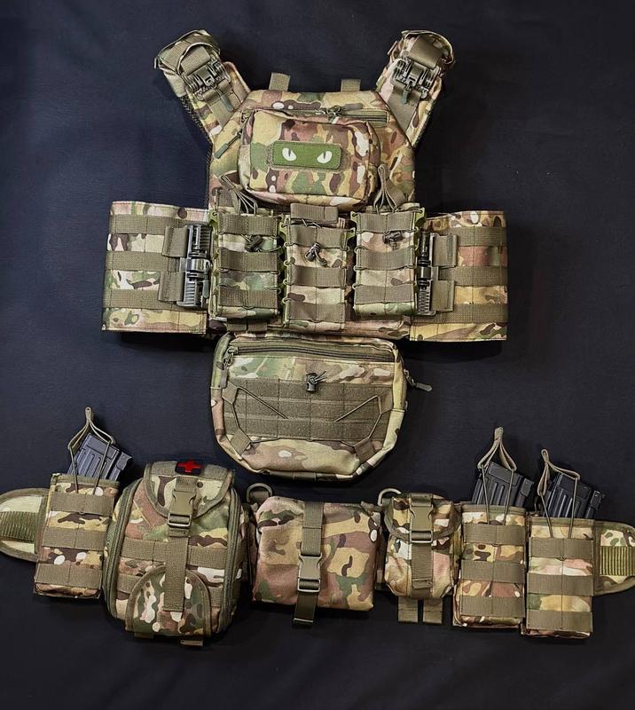 ## Плитоноска быстрого сброса+ РПС и 10 Подсумоков для военного снаряжения VE-33 Внимание важная информация! Шевроны в комплект не входят Комплект: -Плитоноска с системой быстрого сброса; 1 шт -каркасный подсумок под магазины 3шт; -нагрудная сумка; 1 шт -напашник; 1 шт -РПС с ремнем "кобра";1 шт -результат под аптечку с системой быстрого сброса; 1 шт -сумка для сброса; 1 шт -результат под гранату; 1 шт -одинарный подсумок под магазины 3 шт. Плитоноска под плиту 25×30см, 4х точечная система быстрого сброса, и боковые карманы под баллистический пакет 15×30 см < br />-Размер плитоноски регулируется. -Из середины 3D сетка и смягчающая подкладка, служащая дополнительным демпфером. -Оборудована эвакуационной ручкой. -По верху прошита системой Molle. />-По переду вшита дополнительная карман на водонепроницаемой молнии. -Бронеплиты вставляются снизу, фиксируются широкой системой липучек. Изготовлена из прочной, водонепроницаемой ткани Кордура 900D. Для пошива полиамидная стропа. Плитоноска прошита армированными нитями. Успейте заказать, количество штук по акции ограничено! Остерегайтесь подделок и низкокачественного товара, его сейчас очень много представлено под видом oригинaлa! Мы предлагаем высочайшее добротное качество товара на рынке Украины, который выполняет свою функцию и от которого вы будете получать только приятные эмоции. Почему покупают именно у нас? Отзывы и рекомендации реальных клиентов Наш магазин имеет многочисленные положительные отзывы от довольных клиентов. Вы можете ознакомиться с их опытом и рекомендациями в описании ниже и на нашем сайте, что поможет вам сделать обоснованный выбор. Прозрачность и честность Мы ведем открытую и честную политику в отношениях с клиентами и всегда идем навстречу. Все характеристики товаров, условия гарантии и обмена четко указаны на нашем сайте, что позволяет избежать недоразумений и обеспечивает доверие клиентов. Легкая система возврата товаров Мы понимаем, что иногда товар может не подойти Вам по тем или иным причинам. Поэтому мы предлагаем гибкую и прозрачную систему возврата товаров, что обеспечивает вам спокойствие и уверенность в вашей покупке. Высокий уровень обслуживания клиентов, 10 лет опыта Наши специалисты всегда готовы предоставить профессиональную консультацию и помощь в выборе товара. Мы ценим каждого клиента и стремимся сделать процесс покупки максимально комфортным и приятным. Быстрая доставка и удобные условия оплаты Мы предлагаем быструю и надежную доставку по всей стране, а также разнообразные способы оплаты, включая наличный и безналичный расчет. Наши клиенты могут выбрать наиболее удобный для себя способ получения товара. ✅ Весь товар проверяется на наличие брака перед отправкой ✅ Отзывы наших клиентов Поторопись, товара по акции осталось всего 3шт! ✅ С заботой о каждом клиенте ✅ ДОСТАВКА ПО всей УКРАИНЕ: Мы качественно и надежно упаковываем все наши посылки, за сохранение содержимого можете не беспокоиться. Но все же просим проверять посылку на предмет повреждений непосредственно в отделении службы доставки, и в случае обнаружения повреждений составлять соответствующий акт с сотрудником службы доставки. Без акта о повреждении претензии не принимаются. Это редкие случаи, но при пересылке хрупких предметов иногда происходят. Поэтому во избежание недоразумений просим