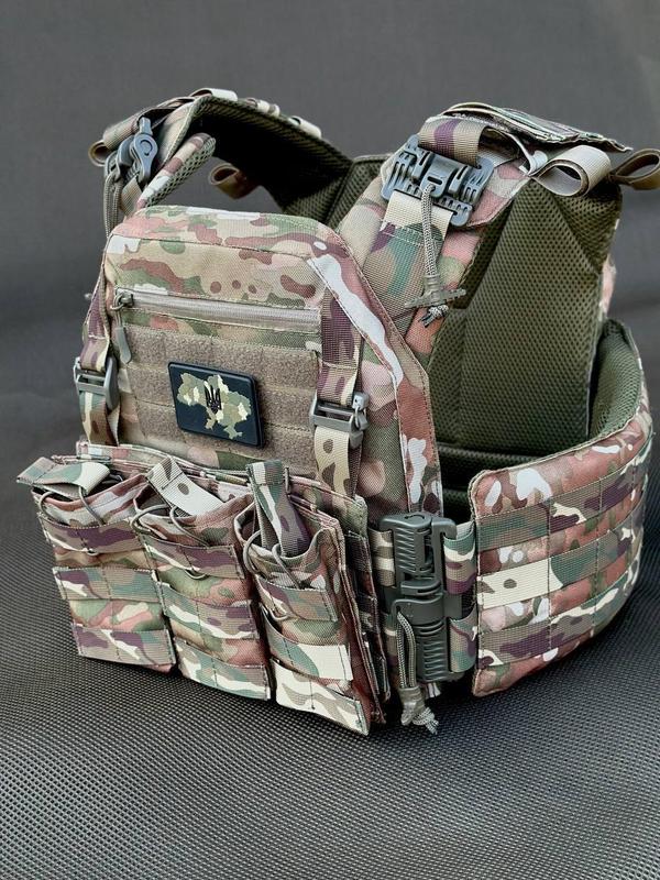 Плитоноска gen.9 з трійним підсумком для ак/ar та шевроном мультикам 25х30 см тактична вій...