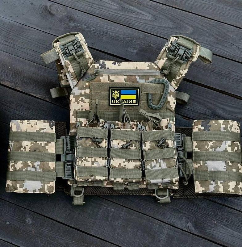## Комплект Плитоноска GEN.7 швидкого скидання+ 3 підсумків Піксель для АК/AR водонепроникна міцна DM-11 Звертаємо Вашу увагу, що фурнітура може відрізнятись по кольору, в залежності від партіі поставки. В комплекті плитоноска 1 шт Підсумок з пластиковими боками для АК /AR 3 шт бокові кармани під м'які балістичні пакети 15*30 см Якісна плитоноска за стандартом НАТО оснащена боковою та верхньою системою швидкого скидання, під плиту 25×30 см. - Розмір плитоноски універсальний, регулюється на плечах та по об'єму від М до XXL. - З середини прошита 3D сіткою та пом'якшуючою підкладкою, що слугує додатковим демпфером. - Позаду оснащена евукаційною ручкою. - По верху прошита системою Molle, що дозволяє кріпити будь-які підсумки та інше додаткове спорядження. - По переду вшитий додатковий карман на блискавці для особистих потреб. - Бронеплити вставляються знизу та фіксуються широкою системою липучок, що не дасть вашим плитам випасти чи протерти кріплення. Виготовлена з міцної, водонепроникної тканини Кордура 900D. Для пошиву використовується поліамідна стропа. Для її виготовлення використовується стійкий до зносу, суперміцний, високоякісний поліамід. Має відмінні властивості: високий рівень міцності, надійна, зможе витримати великі навантаження, стійка до негативного впливу ультрафіолету, вологи, високих/низьких температур, довговічна. Відповідає вимогам вітчизняних стандартів якості. Плитоноска прошита армованими нитками, що підвищує термін служби виробу. Встигніть замовити, кількість штук за акцією обмежена! Остерігайтеся підробок і низькоякісного товару, його зараз дуже багато представлено під видом opигiнaлy! Ми пропонуємо найвищу добротну якість товару на ринку України, який виконує свою функцію та від якого ви отримуватиме тільки приємні емоції. Чому купують саме у нас? Відгуки та рекомендації реальних клієнтів Наш магазин має численні позитивні відгуки від задоволених клієнтів. Ви можете ознайомитися з їхнім досвідом і рекомендаціями в описі нижче та на нашому сайті, що допоможе вам зробити обґрунтований вибір. Прозорість і чесність Ми ведемо відкриту і чесну політику у відносинах з клієнтами і завжди йдемо на зустріч. Усі характеристики товарів, умови гарантії та обміну чітко вказані на нашому сайті, що дозволяє уникнути непорозумінь та забезпечує довіру клієнтів. Легка система повернення товарів Ми розуміємо, що іноді товар може не підійти Вам по тим чи іншим причинам. Тому ми пропонуємо гнучку та прозору систему повернення товарів, що забезпечує вам спокій і впевненість у вашій покупці. Високий рівень обслуговування клієнтів, 10 років досвіду Наші фахівці завжди готові надати професійну консультацію та допомогу у виборі товару. Ми цінуємо кожного клієнта і прагнемо зробити процес покупки максимально комфортним і приємним. Швидка доставка та зручні умови оплати Ми пропонуємо швидку та надійну доставку по всій країні, а також різноманітні способи оплати, включаючи готівковий і безготівковий розрахунок. Наші клієнти можуть обрати найзручніший для себе спосіб отримання товару. ✅ Весь товар перевіряється на наявність браку перед відправленням ✅ Відгуки наших клієнтів Поквапся, товару за акцією залишилося всього 3шт! ✅ З турботою про кожного клієнта ✅ ДОСТАВКА ПО всій УКРАЇНІ: Ми якісно та надійно пакуємо всі наші посилки, за збережен