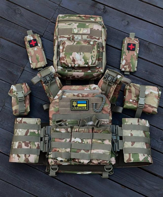 ## Плитоноска GEN.7 швидкого скидання+ 6 підсумків та Рюкзак Мультикам VE-33 Звертаємо Вашу увагу, що фурнітура може відрізнятись по кольору, в залежності від партіі поставки. Шеврон в комплект не входить Плитоноска з системою швидкого скидання 1 шт тройний підсумок під магазини 1 шт рюкзак 1 шт утилітарний підсумокт 1 шт Підсумок сумка для скиду 1 шт Підсумок під гранату 1 шт Підсумок під турнікет,2 шт бокові кармани під м'які балістичні пакети 15*30 см Якісна плитоноска за стандартом НАТО оснащена боковою та верхньою системою швидкого скидання, під плиту 25×30 см. - Розмір плитоноски універсальний, регулюється на плечах та по об'єму від М до XXL. - З середини прошита 3D сіткою та пом'якшуючою підкладкою, що слугує додатковим демпфером. - Позаду оснащена евукаційною ручкою. - По верху прошита системою Molle, що дозволяє кріпити будь-які підсумки та інше додаткове спорядження. - По переду вшитий додатковий карман на блискавці для особистих потреб. - Бронеплити вставляються знизу та фіксуються широкою системою липучок, що не дасть вашим плитам випасти чи протерти кріплення. Виготовлена з міцної, водонепроникної тканини Кордура 900D. Для пошиву використовується поліамідна стропа. Для її виготовлення використовується стійкий до зносу, суперміцний, високоякісний поліамід. Має відмінні властивості: високий рівень міцності, надійна, зможе витримати великі навантаження, стійка до негативного впливу ультрафіолету, вологи, високих/низьких температур, довговічна. Відповідає вимогам вітчизняних стандартів якості. Плитоноска прошита армованими нитками, що підвищує термін служби виробу. Встигніть замовити, кількість штук за акцією обмежена! Остерігайтеся підробок і низькоякісного товару, його зараз дуже багато представлено під видом opигiнaлy! Ми пропонуємо найвищу добротну якість товару на ринку України, який виконує свою функцію та від якого ви отримуватиме тільки приємні емоції. Чому купують саме у нас? Відгуки та рекомендації реальних клієнтів Наш магазин має численні позитивні відгуки від задоволених клієнтів. Ви можете ознайомитися з їхнім досвідом і рекомендаціями в описі нижче та на нашому сайті, що допоможе вам зробити обґрунтований вибір. Прозорість і чесність Ми ведемо відкриту і чесну політику у відносинах з клієнтами і завжди йдемо на зустріч. Усі характеристики товарів, умови гарантії та обміну чітко вказані на нашому сайті, що дозволяє уникнути непорозумінь та забезпечує довіру клієнтів. Легка система повернення товарів Ми розуміємо, що іноді товар може не підійти Вам по тим чи іншим причинам. Тому ми пропонуємо гнучку та прозору систему повернення товарів, що забезпечує вам спокій і впевненість у вашій покупці. Високий рівень обслуговування клієнтів, 10 років досвіду Наші фахівці завжди готові надати професійну консультацію та допомогу у виборі товару. Ми цінуємо кожного клієнта і прагнемо зробити процес покупки максимально комфортним і приємним. Швидка доставка та зручні умови оплати Ми пропонуємо швидку та надійну доставку по всій країні, а також різноманітні способи оплати, включаючи готівковий і безготівковий розрахунок. Наші клієнти можуть обрати найзручніший для себе спосіб отримання товару. ✅ Весь товар перевіряється на наявність браку перед відправленням ✅ Відгуки наших клієнтів Поквапся, товару за акцією залишилося всь