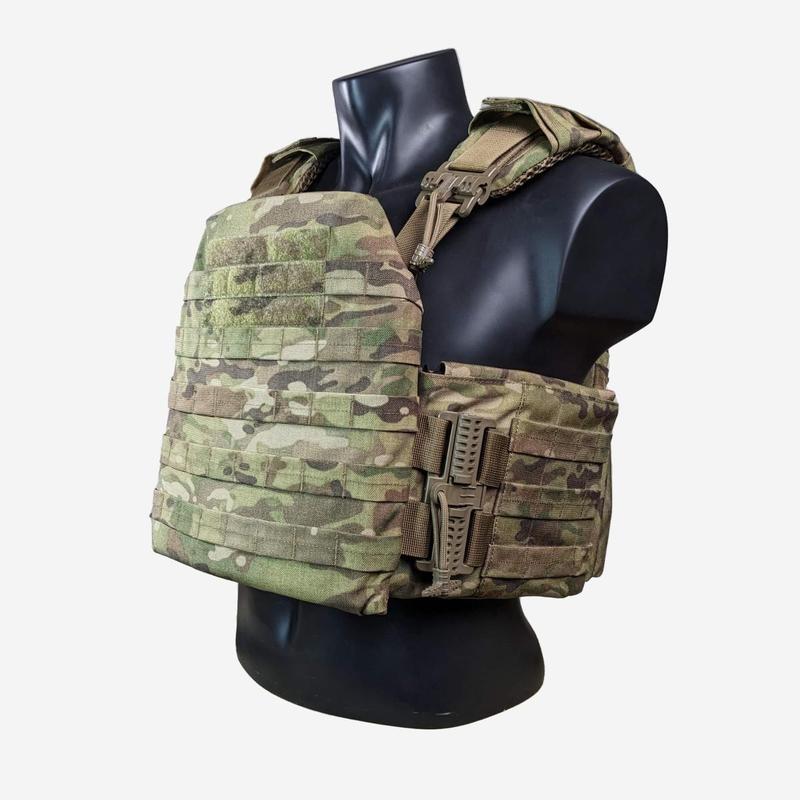 ## Плитоноска быстрого сброса SOF STORE 25х30см Cordura 1000D Мультикам для пластин 25*30 см VE-33 Характеристика ⁃Вес 1500 грм ⁃ Изготовлен из износостойкого материала Cordura 1000D ⁃ Фурнитура быстрого сброса от украинского производителя ⁃ Все швы прошиты армированными нитями серии TYTAN ⁃ из двойного слоя кордуры 1000D и прошиты армированными нитями TYTAN НАДЕЖНА ⁃ IRR покрытие (НЕ ВИДНО В ТЕПЛОВИЗОР, отталкивает влагу) ⁃ Имеет двойную систему быстрого сброса ⁃ Рассчитана *30 см (подходит под керамические и стальные шутурмовые плиты) ⁃ Имеет дополнительные ремни для фиксации плит внутри ⁃ Прочная эвакуационная стропа, которая выдерживает нагрузку свыше 180кг УДОБНАЯ ⁃ Регулируется по высоте и объема для размеров S/4XL ⁃ Демпферные подушки толщиной 15 мм по всей внутренней поверхности плитоноски Описание SOF STORE - современная военная плитоноска, которая сочетает в себе удобство, эргономичность и, самое главное, качество Плитоноска является высококачественным и надежным выбором для нуждающихся в защитном снаряжении. Вот основные преимущества и характеристики этой плитоноски: Материал: Cordura 1000D: Сверхпрочный материал, известный своей стойкостью к износу и долговечностью. Фурнитура и застежки: Быстрый сброс : Оснащена двойной системой быстрого сброса от украинского производителя. Velcro: Текстильные застежки для удобного крепления и регулировки. Регулировка: Размеры: Подходит для размеров от S до 4XL, регулируется по высоте и объема. Стропы и крепления: MOLLE система: Стропы MOLLE по всей площади плитоноски для крепления дополнительного снаряжения. Двойной слой Cordura 1000D: Стропы изготовлены из двойного слоя кордуры и прошитые армированными нитями для дополнительной прочности. Для вашей максимальной защиты и комфорта мы разработали несколько размеров боковых камербандов под баллистические пакеты, благодаря чему плитоноски подойдут на любой объем и любой рост. Размеры боковых камербандов на выбор: 1. 15см х 22см (регулировка плитоноски по объему от 100см - 108см) 2. 15см х 25см (регулировка плитоноски по объему от 108см - 116см) 3. 15см х 30см (регулировка плитоноски по объему от 122см - 136 см) 4. 15см х 35 см (регулировка плитоноски по объему от 129см - 143 см) Камербанды: Возможность установки баллистических пакетов в боковые камербанды, доступные в разных размерах Внутренняя часть: Демпферные подушки: Толщиной 15 мм, размещены по всей внутренней поверхности для дополнительного комфорта и защиты. Дополнительные ремни: Для фиксации плит внутри плитоноски. />Размеры плит: 25х30 см: Подходит для керамических и стальных штурмовых плит. Другие особенности: Эвакуационная стропа: Прочная стропа, выдерживающая нагрузку более 180 кг. /> Возможности доукомплектации: подсумоки: Возможность дополнительной оснастки. Плиты: Возможность установки защитных плит. Балистическая защита: Доукомплектация баллистической защитой. Напашник: С возможностью установки баллистического пакета. Плитоноска предлагает высокий уровень защиты, комфорта и функциональности, что делает ее отличным выбором для профессионального использования. Успейте заказать, количество штук по акции ограничено! Остерегайтесь подделок и низкокачественного товара, его сейчас очень много представлено под видом oригинaлa! Мы предлагаем высочайшее добротное качество товара на рынке Украины, который выполняет свою функцию и от которого вы буд