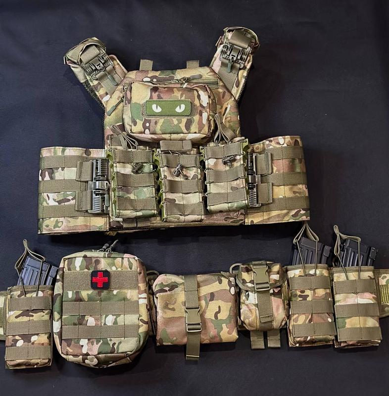 ## Комплект плитоноска швидкого скидання з боковими карманами + РПС та 10 підсумків - військовий набі VE-33 Шеврони в комплект не входять ! В комплекті плитоноска 1 шт Підсумок для АК з пластиковими боками 3 шт Підсумок ординарний для АК 3 шт Підсумок під гранату 1 шт Підсумок для скидання 1 шт РПС Кобра без плечиков 1 шт Аптечка 1 шт Горизонтальна підсумка 1 шт Якісна плитоноска за стандартом НАТО оснащена боковою та верхньою системою швидкого скидання, під плиту 25×30 см. бокові кармани під м'які балістичні пакети 15*30 см - Розмір плитоноски універсальний, регулюється на плечах та по об'єму від М до XXL. - З середини прошита 3D сіткою та пом'якшуючою підкладкою, що слугує додатковим демпфером. - Позаду оснащена евукаційною ручкою. - По верху прошита системою Molle, що дозволяє кріпити будь-які підсумки та інше додаткове спорядження. - По переду вшитий додатковий карман на блискавці для особистих потреб. - Бронеплити вставляються знизу та фіксуються широкою системою липучок, що не дасть вашим плитам випасти чи протерти кріплення. Виготовлена з міцної, водонепроникної тканини кордура. Для пошиву використовується поліамідна стропа. Для її виготовлення використовується стійкий до зносу, суперміцний, високоякісний поліамід. Має відмінні властивості: високий рівень міцності, надійна, зможе витримати великі навантаження, стійка до негативного впливу ультрафіолету, вологи, високих/низьких температур, довговічна. Відповідає вимогам вітчизняних стандартів якості. Плитоноска прошита армованими нитками, що підвищує термін служби виробу. РПС без плечиків!!! Довжина ременя регулюється від 110 см до 95 см. Розмір підкладки 90*10 см РПС оснащений кріпленнями для подальшого використання плечиків та ремнем "кобра" на магнітній застібці. Ремінь змінний. В середину вшита помякшуюча підкладка що слугує додатковим демфером. РПС оснащений дихаючою 3D сіткою з внутрішньої сторони, що робить його більш комфортнішим у використанні. С зовнішньої сторони система моллі з міцної та надійної поліамідної стропи, для кріплення підсумків та іншого додаткового спорядження. Все прошито армованими нитками, що підвищує термін служби виробу. Встигніть замовити, кількість штук за акцією обмежена! Остерігайтеся підробок і низькоякісного товару, його зараз дуже багато представлено під видом opигiнaлy! Ми пропонуємо найвищу добротну якість товару на ринку України, який виконує свою функцію та від якого ви отримуватиме тільки приємні емоції. Чому купують саме у нас? Відгуки та рекомендації реальних клієнтів Наш магазин має численні позитивні відгуки від задоволених клієнтів. Ви можете ознайомитися з їхнім досвідом і рекомендаціями в описі нижче та на нашому сайті, що допоможе вам зробити обґрунтований вибір. Прозорість і чесність Ми ведемо відкриту і чесну політику у відносинах з клієнтами і завжди йдемо на зустріч. Усі характеристики товарів, умови гарантії та обміну чітко вказані на нашому сайті, що дозволяє уникнути непорозумінь та забезпечує довіру клієнтів. Легка система повернення товарів Ми розуміємо, що іноді товар може не підійти Вам по тим чи іншим причинам. Тому ми пропонуємо гнучку та прозору систему повернення товарів, що забезпечує вам спокій і впевненість у вашій покупці. Високий рівень обслуговування клієнтів, 10 років досвіду Наші фахівці завжди готові надати проф