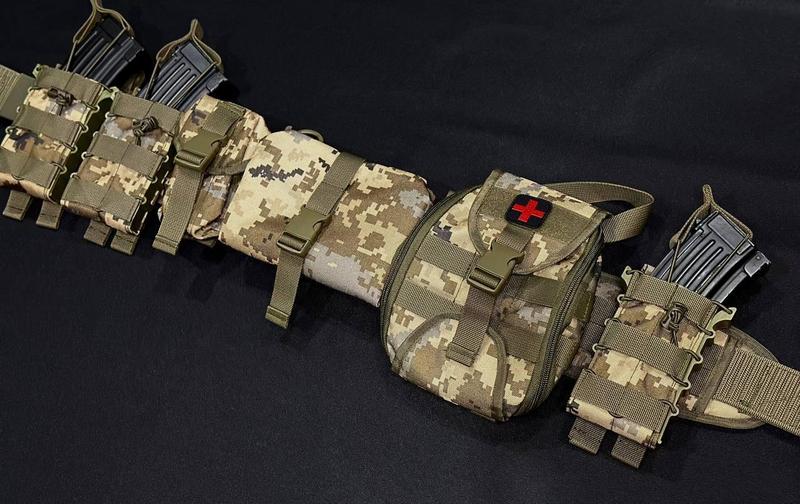 ## Комплект РПС з Фастексом + 6 підсумків Піксель для швидкого скидання. DM-11 До комплекту входять: -РПС та ременем на фастексі 1 шт -підсумок під аптечку швидкого скидання 1 шт -сумка для скиду 1 шт -підгранатник 1 шт -підсумок під магазини з пластиковими боками 3 шт. Шеврон Медичний хрест 1 шт Довжина ременя регулюється від 125 см до 95 см, ширина 5 см. Розмір підкладки 90*10 см РПС оснащений кріпленнями для подальшого використання плечиків та ремнем з фастексом В середину вшита помякшуюча підкладка що слугує додатковим демфером. РПС оснащений дихаючою 3D сіткою з внутрішньої сторони, що робить його більш комфортнішим у використанні. Зовнішня сторона оснащення системою моллі з міцної та надійної поліамідної стропи, для кріплення підсумків та іншого додаткового спорядження. Все прошито армованими нитками, що підвищує термін служби виробу. Встигніть замовити, кількість штук за акцією обмежена! Остерігайтеся підробок і низькоякісного товару, його зараз дуже багато представлено під видом opигiнaлy! Ми пропонуємо найвищу добротну якість товару на ринку України, який виконує свою функцію та від якого ви отримуватиме тільки приємні емоції. Чому купують саме у нас? Відгуки та рекомендації реальних клієнтів Наш магазин має численні позитивні відгуки від задоволених клієнтів. Ви можете ознайомитися з їхнім досвідом і рекомендаціями в описі нижче та на нашому сайті, що допоможе вам зробити обґрунтований вибір. Прозорість і чесність Ми ведемо відкриту і чесну політику у відносинах з клієнтами і завжди йдемо на зустріч. Усі характеристики товарів, умови гарантії та обміну чітко вказані на нашому сайті, що дозволяє уникнути непорозумінь та забезпечує довіру клієнтів. Легка система повернення товарів Ми розуміємо, що іноді товар може не підійти Вам по тим чи іншим причинам. Тому ми пропонуємо гнучку та прозору систему повернення товарів, що забезпечує вам спокій і впевненість у вашій покупці. Високий рівень обслуговування клієнтів, 10 років досвіду Наші фахівці завжди готові надати професійну консультацію та допомогу у виборі товару. Ми цінуємо кожного клієнта і прагнемо зробити процес покупки максимально комфортним і приємним. Швидка доставка та зручні умови оплати Ми пропонуємо швидку та надійну доставку по всій країні, а також різноманітні способи оплати, включаючи готівковий і безготівковий розрахунок. Наші клієнти можуть обрати найзручніший для себе спосіб отримання товару. ✅ Весь товар перевіряється на наявність браку перед відправленням ✅ Відгуки наших клієнтів Поквапся, товару за акцією залишилося всього 3шт! ✅ З турботою про кожного клієнта ✅ ДОСТАВКА ПО всій УКРАЇНІ: Ми якісно та надійно пакуємо всі наші посилки, за збереження вмісту можете не турбуватися. Але все ж просимо перевіряти посилку на предмет пошкоджень безпосередньо у відділенні служби доставки, і в разі виявлення пошкоджень складати відповідний акт із працівником служби доставки. Без акту про пошкодження претензії не приймаються. Це рідкісні випадки, але під час пересилення тендітних предметів іноді відбуваються. Тому, щоб уникнути недомислень, просимо перевіряти вміст посилки під час отримання. Вдалих Вам покупок.