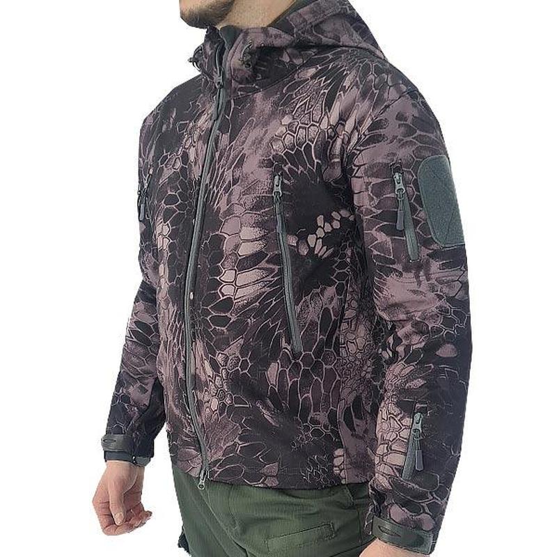 Куртка тактична Soft Shell Python night Тактична куртка Soft Shell у кольорі "Пітон" розроблена для заміни кількох шарів одягу. Вона складається з верхнього вологовідштовхувального шару Софт Шелл, паропровідної мембрани та м'якої флісової підкладки, приємної на дотик. Матеріал допомагає підтримувати теплообмін в організмі при інтенсивних навантаженнях та захищає від дощу та вітру. Тканина легка та гнучка, не сковує рухів. Крім того, конструктивний крій куртки продуманий до дрібниць і чим би ви не займалися - велосипедним спортом, рибалкою, пішими прогулянками в лісовій або гористій місцевості ця куртка стане тим незамінним помічником у довгій дорозі, що ви не захочете її знімати. Капюшон куртки має зручні затягування на фіксаторі та козирок, що дає додатковий комфорт за поганих погодних умов. Рукави куртки на зап'ясті фіксуються щільними гумовими липучками. 7 зовнішніх кишень допоможуть розмістити потрібні предмети відповідно до пріоритетів. Подробиці курточки Soft Shell Пітон Ніч Тактична куртка з плямистим забарвленням під пітоном призначена для нічних вилазок і вдалого маскування на місцевості. Крім стильного зовнішнього вигляду, вона має здатність зливатися з об'єктами природи та не привертати увагу навіть у міських умовах. Вона успішно імітує гру світла та тіні, створюючи ефект «невидимості». Переваги матеріалу Софт Шелл для мандрівників: * добре тримає форму; * Відштовхує вологу; * Зберігає тепло; * зносостійка, не боїться пошкоджень; * Проста у догляді.