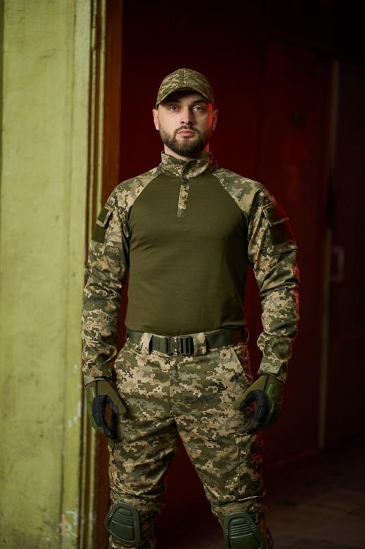 - Кофта из качественного трикотажа военных цветов. - Ворот на молнии до середины груди. - Рукава реглан, заканчиваются манжетами на липучке. - На обоих рукавах есть карманы липучки, на которые можно цеплять шевроны.