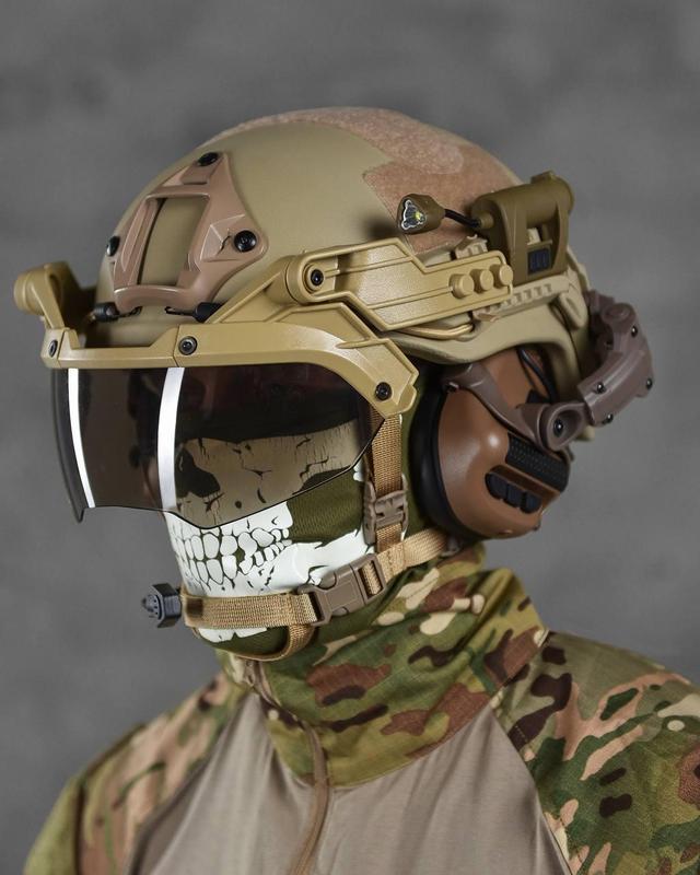 Шолом fast pe nij iiia тактичний з навушниками earmor m32 ліхтариком та окулярами для війс...