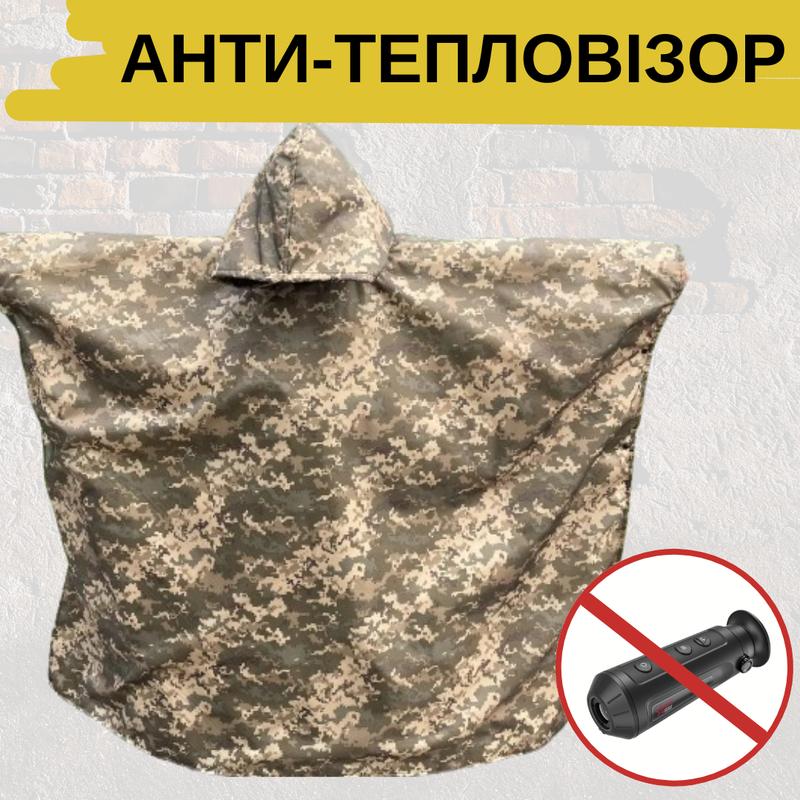 Тактичний пончо накидка дощовик із захистом від тепловізора військовий маскувальний плащ-д...