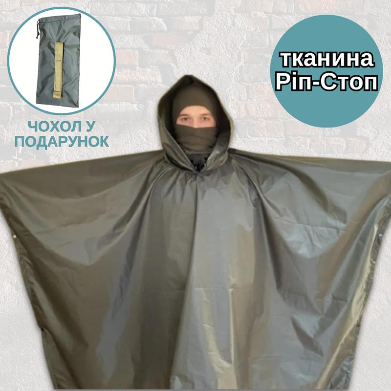 Дощовик плащ-палатка ріп-стоп хаки тактичний армійський пончо-накидка від дощу для військо...