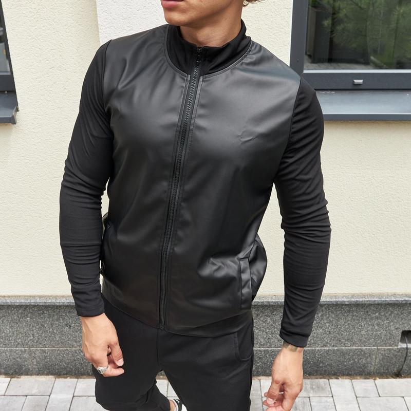 Приталенный бомбер ,идеально подойдет на весну-осень Приятная к телу кожа Цвет : черный Материал : Основа - Еко кожа матовая Рукава - дайвинг Размеры : S,M,L,XL