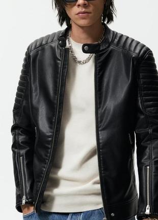 Класна куртка, штучна шкіра. По бірці М, маломірить. Заміри: довжина 66, ширина під рукавами 51, рукав 60, плечі 42,