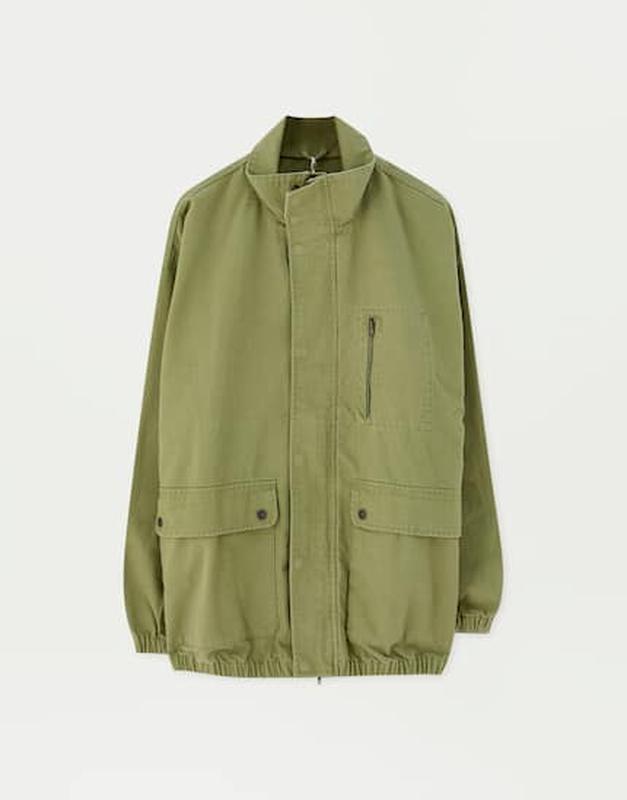 Стильная демисезонная мужская куртка от известного испанского бренда Pull&Bear. Два больших накладных кармана на кнопках. Один нагрудной карман на молнии. Низ и рукава на широкой эластичной резинке. Кнопки с с фирменным логотипом Pull&Bear. Отличное качество! Состав: 100% плотный хлопок. Размер: L.