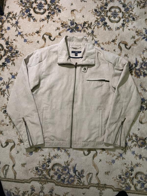 Дуже легка та приємна куртка. Розмір: M, може підійти на L. На дотик схожа на м’яку шкіру. Застібається на блискавку, має три внутрішніх та дві зовнішніх кишені. Також регулюється знизу. Комірець має додаткову застібку. Дефектів немає.