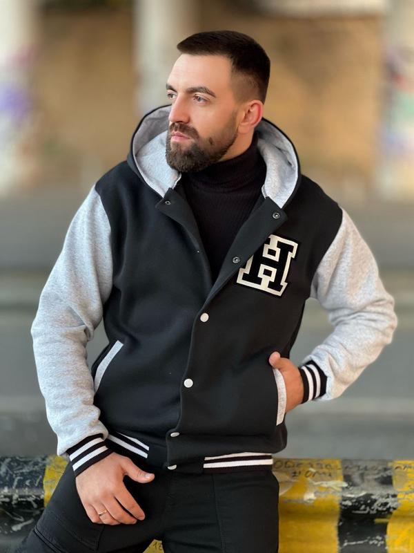 Бомбер чоловічий на кнопках з капюшоном та кишенями арт. mag. 10328 Матеріал: тринитка на флісі, якість люкс Розмір: м, л, хл, ххл.ск1.Не натискайте на кнопку Купить, технічні проблеми Підписуйтесь..чекаю)