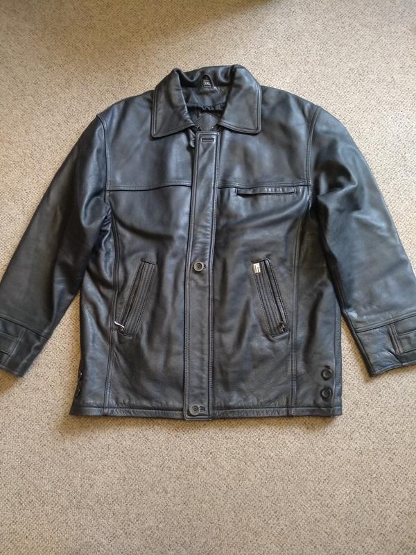 куртка чоловіча пошита з натуральної якісної шкіри. Довжина 80 см довжина рукава 66см ширина в плечах 58 см пів'обєм в грудях 64 см прямий крій