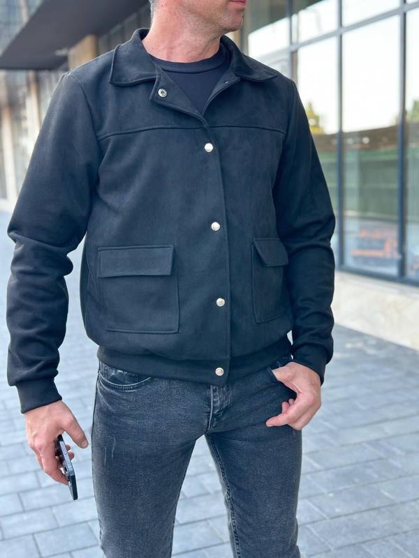 Стильний замшевий бомбер, актуальний цієї осені Тканина: замш на дайвінгу Розмір: 46-48, 50-52, 54-56 Колір: чорний, графіт, кемел