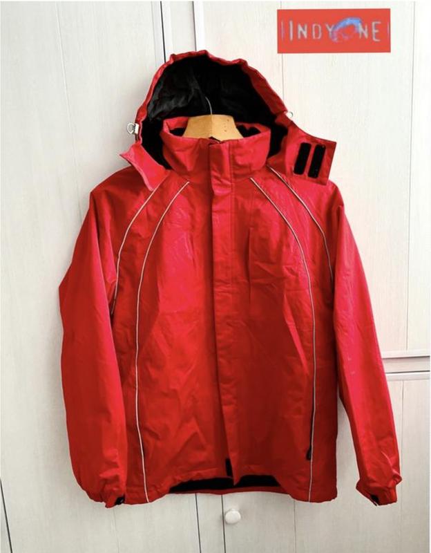 Куртка [IndyOne] чоловіча XL з капюшоном Оригінальна яскрава куртка з флісовою підкладкою, липучки регулювання на рукаві, знизу гумова стяжка з карабіном Стан гарний - на фото Світловідбивні смужки Розмір за біркою XL Виміри: - плечі - ~ без чітких меж - груди (напівобхват, між пахвами) - 61 - Довжина по спині без урахування коміра - 74 - Довжина рукава від плеча - 63 - Довжина рукава від коміра 80 см