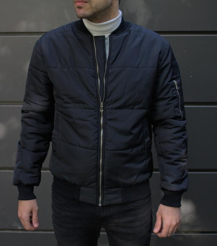 Мужская черная куртка бомбер утепленная