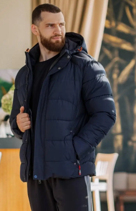 Тканина нова  технологія плащової тканини -Корея (не промокає, не пропускає вітер, але водночас циркулює повітря). Холофайбер щільність 300 ( тепла зима, дуже тепла до -30). капюшон відстібається. Усередині 2 внутрішні кишені. Підкладка — мікромахра (м'яка та приємна) + фольгована теплоощадна підкладка. На рукаві трикотажний манжет Розміри: 48 (S), 50 (M),52 (L),54 (XL),56 (2XL) Заміри: Розмір 48 ог-108,от -106,довжина-66,рукав-60 Розмір 50 ог-114, від-112, довжина-69,рукав-61 Розмір 52 ог-118, від-116, довжина-72,рукав-63 Розмір 54 ог-120, від-118, довжина-74,рукав-64 Розмір 56 ог-124, від-122, довжина — 76,рукав —66