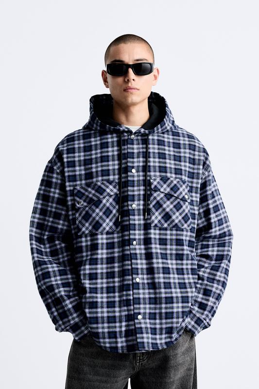 Утеплена верхня сорочка Zara Верхня сорочка вільного крою з капюшоном і довгими рукавами. Застібається на ґудзики спереду. Накладні кишені на грудях, бічні кишені на стегнах. ґудзики на манжетах і підкладка з легким стьобаним ефектом. Верх 100% бавовна Підкладка 75% поліестер 25% бавовна Наповнювач 70% поліестер 30% силікон Колекція 2023