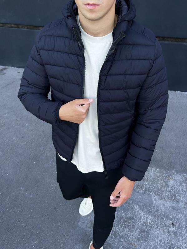 Чоловіча куртка весняна темно-синя стьобана з капюшоном