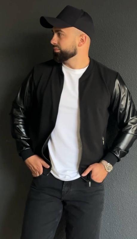 Бомбер чоловічий ціна - 1300 грн Розміри: S, M, L, XL, XXL, XXХL Сезон: весна-осінь Матеріал: трикотаж + екошкіра Добре тягнеться Якісна турецька тканина Арт.10401