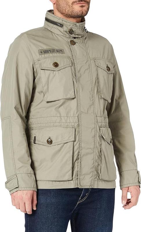Завдяки своєму спортивному стилю польової куртки куртка Camel Active надає одязі для відпочинку сміливий військовий вигляд. Завдяки водовідштовхувальному просоченню модель витримує невеликий дощ, а вбудований в комір-стійку капюшон захищає від холоду і надає всьому цьому додаткову порцію модної прохолоди. дві набедренні кишені з клапанами на ґудзиках, доступні з двох сторін Наш розмір ХХЛ Стан нова, паперових бірок немає Манжети на застібках Аплікація логотипу на верхній частині спини внутрішня кишеня з кнопками внутрішній шнурок на талії частково підкладений Містить нетекстильні частини тваринного походження. легкий матеріал із суміші бавовни водовідштовхувальне просочення Комір-стійка на блискавці та вбудований легкий капюшон Передня застібка-блискавка з нижнім клапаном і застібка-застібка дві нагрудні кишені з клапанами на гудзиках Зовнішній матеріал: 75% бавовна, 25% поліамід Підкладка: 100% поліестер