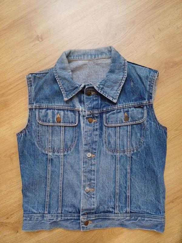 желетка вінтажна джинсова синя WESTERN SUPER RIFLE size S-M made in ITALY стан - гарний, є пятна заміри 1) плечі 42 см 2) між пахвами 53 см 3) низ куртки 46 см 4) довжина по спинці від низу коміра до низу 54 см