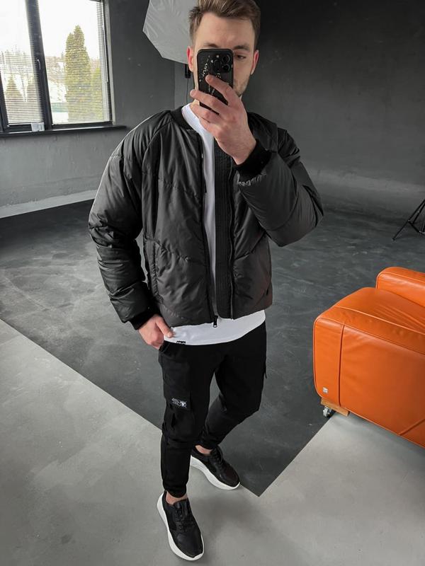 Бомбер Кросс Розміри: С,М,Л,ХЛ Колір: чорний Тканина: плащівка лакке Наповнювач: синтетичний пух Особливості моделі: - зручний оверсайз крій - плече реглан - універсальна посадка по фігурі - внутрішній карман на блискавці - два завнішніх карманів на застібці-блискавці,в середені кармани з флісу для комфорту Класичні елементи бомберу - комірець та манжети. Температура комфортного носіння 0-15 градусів