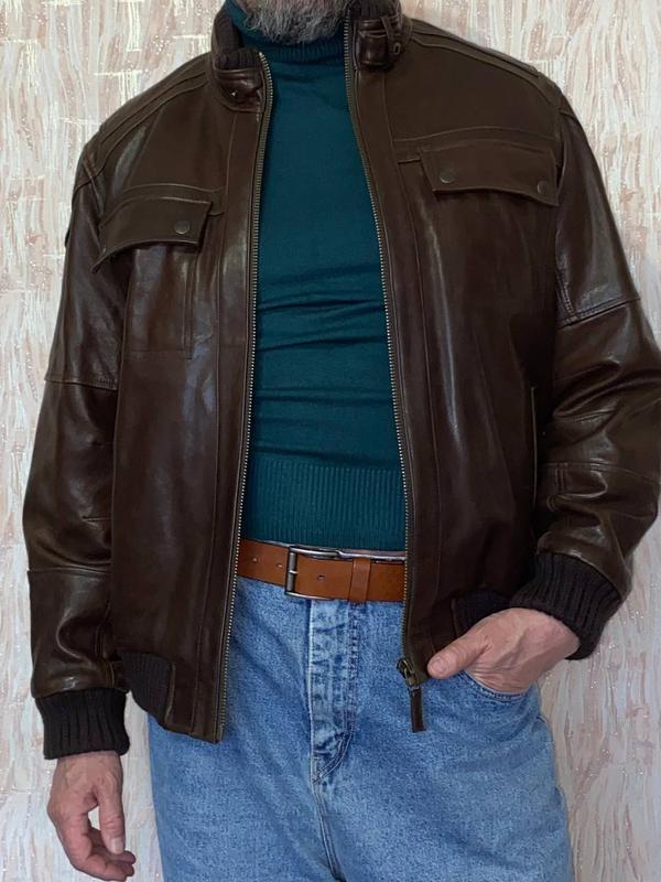 Розмір ХЛ повномірний Натуральна шкіра Стан гарний Плечі 51 см Рукав від шва 67см Пог 64см Довжина від плеча 72см