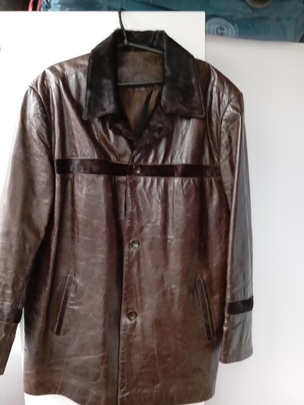 гарна нова куртка шкіряна,оздоблена гладким хутром.56 розмір 5 зріст