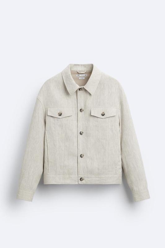 Чоловіча лляна куртка ZARA — натуральність, стиль і комфорт Ідеальний варіант на весну, прохолодні літні вечори або осінь — куртка від ZARA з 100% льону, яка поєднує класичний стиль і сучасний комфорт. Опис: — Колір: світло-бежевий — універсальний, пасує до всього — Класичний комір, довгі рукави з манжетами на ґудзиках — Дві нагрудні кишені з клапанами — для стилю й зручності — Застібка на ґудзики спереду — лаконічно й практично — Вільний, але елегантний крій Матеріали: • Зовнішня частина: 100% льон — дихає, не парить • Підкладка: 100% бавовна — м’яка й приємна до тіла Розмір: M Стан: нова, з біркою — ідеальна як на подарунок, так і у власну колекцію Ця куртка — про стиль, який не вимагає зусиль.