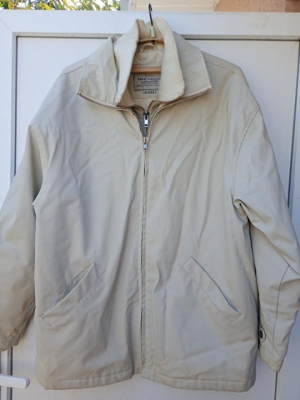 теплая мужская куртка из искусственной кожи молочного цвета ;длина82;ОГ-120;длина рукава 62