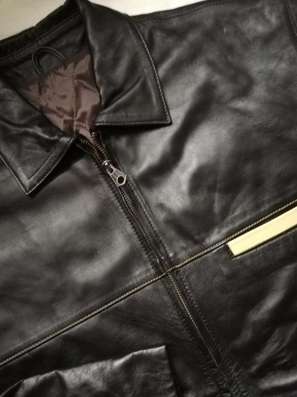 Утепленні куртка з високоякісної еластичної натур шкіри. Довжина по спині 76 см плечі 52 см довжина рукава від коміра 81 см пог 58 поб 57 см. Підкладка на синтепоні. Заміри по виробу Стан новий