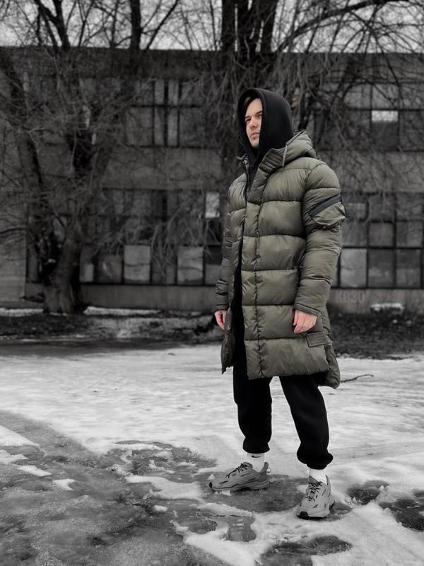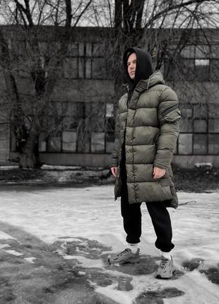 Чоловіча тепла довга зимова плащівка кольору хакі якісна плащівка для хлопця