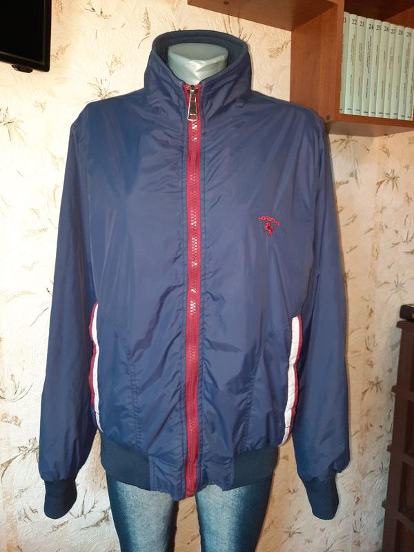На теплую осень/весну. Размер указан XXL, смотрите внимательно замеры. Материал верха - плащевка. Утеплювач - тонкий слой синтепону. Материал подкладки - нейлон. Состояние: очень хорошее. Немного потемнили полоски на карманах, не критически. Цвет - темный синий. Замеры: длина от верхней точки плеча до низа 68. длина рукава от плечевого шва 67, от горловины 82. полуобхват бицепса 22. полуобхват груди: 58. полу охват талии: 56. полуобхват внизу 43 тянется до 58. ширина между плечами швами 47.