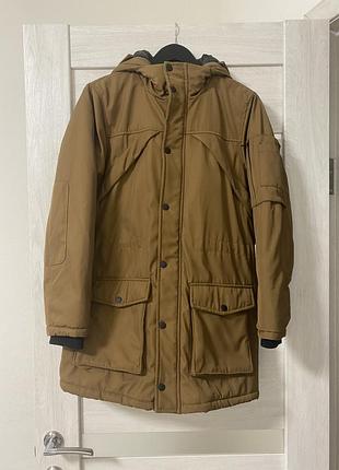 чоловіча демісезонна, зимова куртка розмір xs. матеріали: поліестер, акрил. потрібно підшити карман, а так куртка в ідеальному стані. рукав 61 пог 55 довжина 83 плечі 44