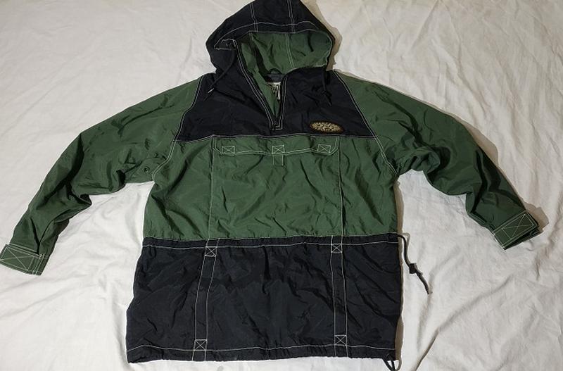 Aнорак.Шикарна,фiрмова рiч. Стан новоi речi,умовно б.у - размiр - L але по факту бiльше розмiр,орiентуйтесь по замiрам - захист вiд дощу та вiтру - 3 зовнiшнiх кишенi - манжети рукавiв на липучках - каптур неземний - Колiр зелений з чорним. Реальнi замiри такi:пiдпахвами полуобем 68см,по спинI вниз вiд шва каптура 80см,рукав от шва каптура зовнiшнiй шов 79см.Пересил Нова Пошта, кошти на карту Приватбанку.