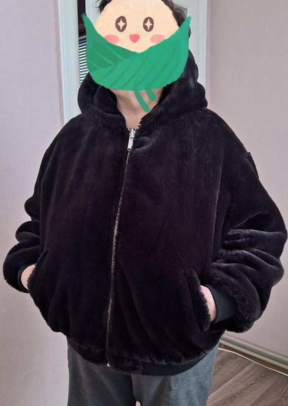 куртка двостороння,з однієї сторони плащовочка мягесенька,а з другої хутро ну дуже мягеньке,не можу сказати,чи це натуральне,чи штучне,так як ярличок тільки маленький фірми zara.пог 85,внизу патент 60,_тягнеться до 75, довжина рукава від шиї 82 см,і довжина куртки 65 см