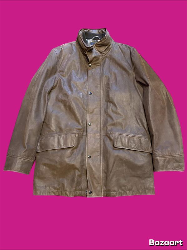 Коричневого кольору шкіряна куртка від відомого бренду Gant , має жилетку і капюшон . Можливо окремо носити. Розмір Л. Стан ідеальний. Дивіться ще мої оголошення.