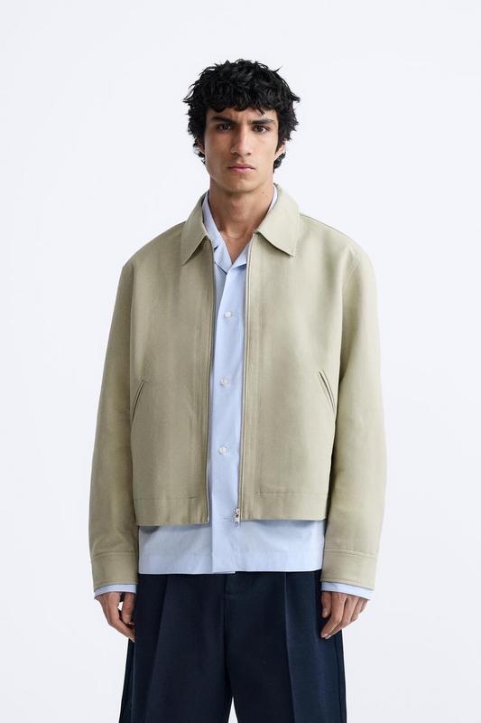 Цвет: Светлый верюлюжий Укороченная хлопковая куртка с рубашечным воротником и длинными рукавами. Застегивается на молнию спереди. Карманы с двумя обшивками спереди, пуговицы на манжетах и швы с контрастной окантовкой внутри. Плечи 52 Груди 65 Рукав 66 Дивлина 66