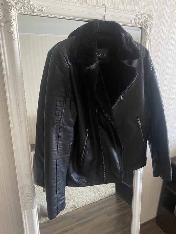 Розмір пише 48 ,але це М розмір по факту Тепла куртка косуха на меху тепла,нова ! Еко шкіра,від натуральної шкіри не відрізнити