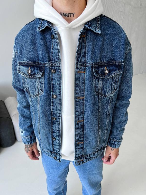 Стильна оверсайз джинсівка 🔝 Артикул : DRM2420 - Матеріал: 100% коттон - Made in Turkey, топ якість 🇹🇷 - 2 нагрудні кишені, 2 великі внутрішні кишені, бокові кишені - імітація❗️ - на рукавах машинна вишивка Розміри: S, M, L, XL (повномірні) (при замовленні обов'язково вказуємо зріст та вагу для перестрахування) На фото розмір S: ❗️Параметри хлопця на фото: Зріст - 178 см Вага – 72 кг