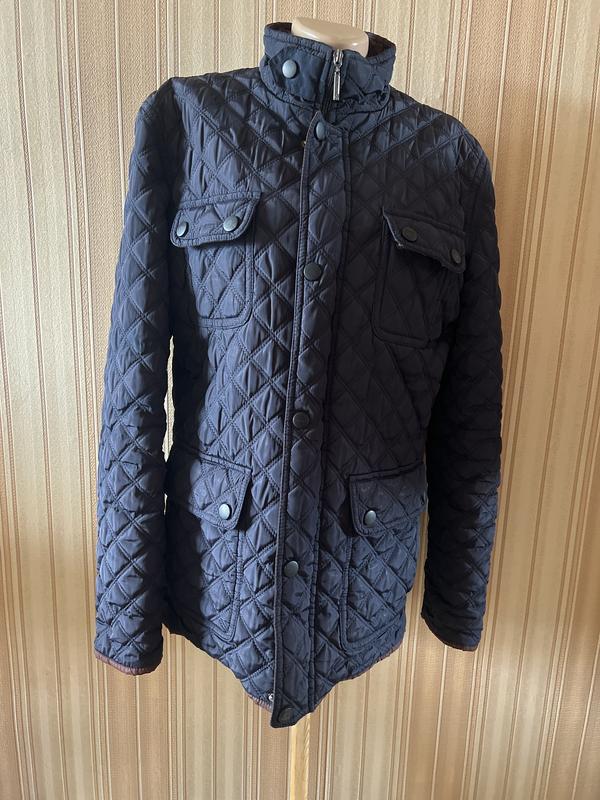 Куртка без капюшона, стьобана з утепленням синтепон. З дефектів фото 4/5 немає кнопок. Замок цілий. Носилась один сезон. Довжина 76 см Плечі 49 см Рукав 70 см Ог 54 см От 52 см Об 54 см