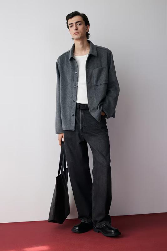 Куртка-сорочка h&m чоловіча сіра прямого крою з чесаного твила,розмір s