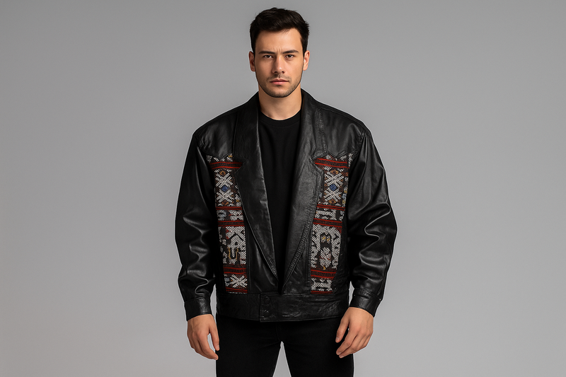 Вінтажна шкіряна куртка з вишивкою boho 80s style leather шкірянка