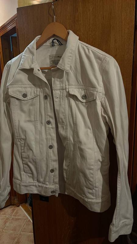Біла щільна джинсова куртка Tom Tailor Denim у відмінному стані. Крій прямий. Заміри на останньому фото, за додатковими запитаннями звертайтеся в приватні повідомлення.