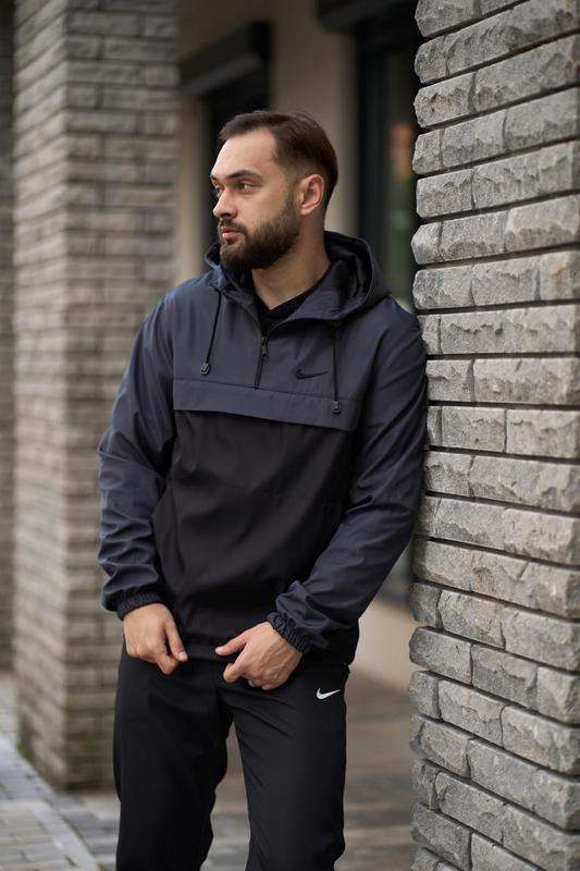 Чоловічий анорак nike на осінь у сіро-чорному кольорі premium якості