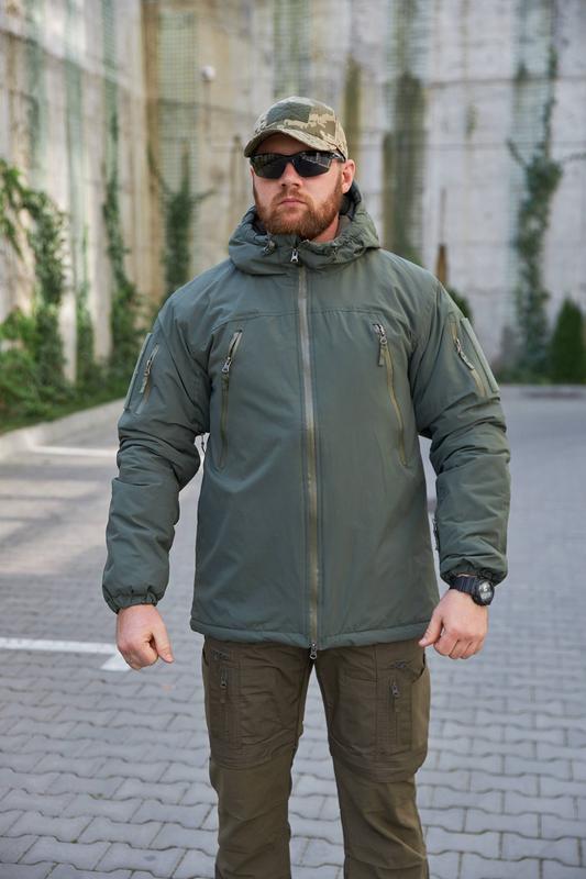 •Розміри: S, M, L, XL, XXL, 3XL (повнорозмірні) •Зовнішня частина не промокає та не продувається; •Мембрана-10 000 мм •Утеплювач: Еко-пух •Капюшон не знімається, регулюється по обʼєму •Рукава йдуть на резинках, присутні велкро панелі під шеврони •Куртка вагою 950 грам, дуже легка але при цьому тепла та дуже компактна.